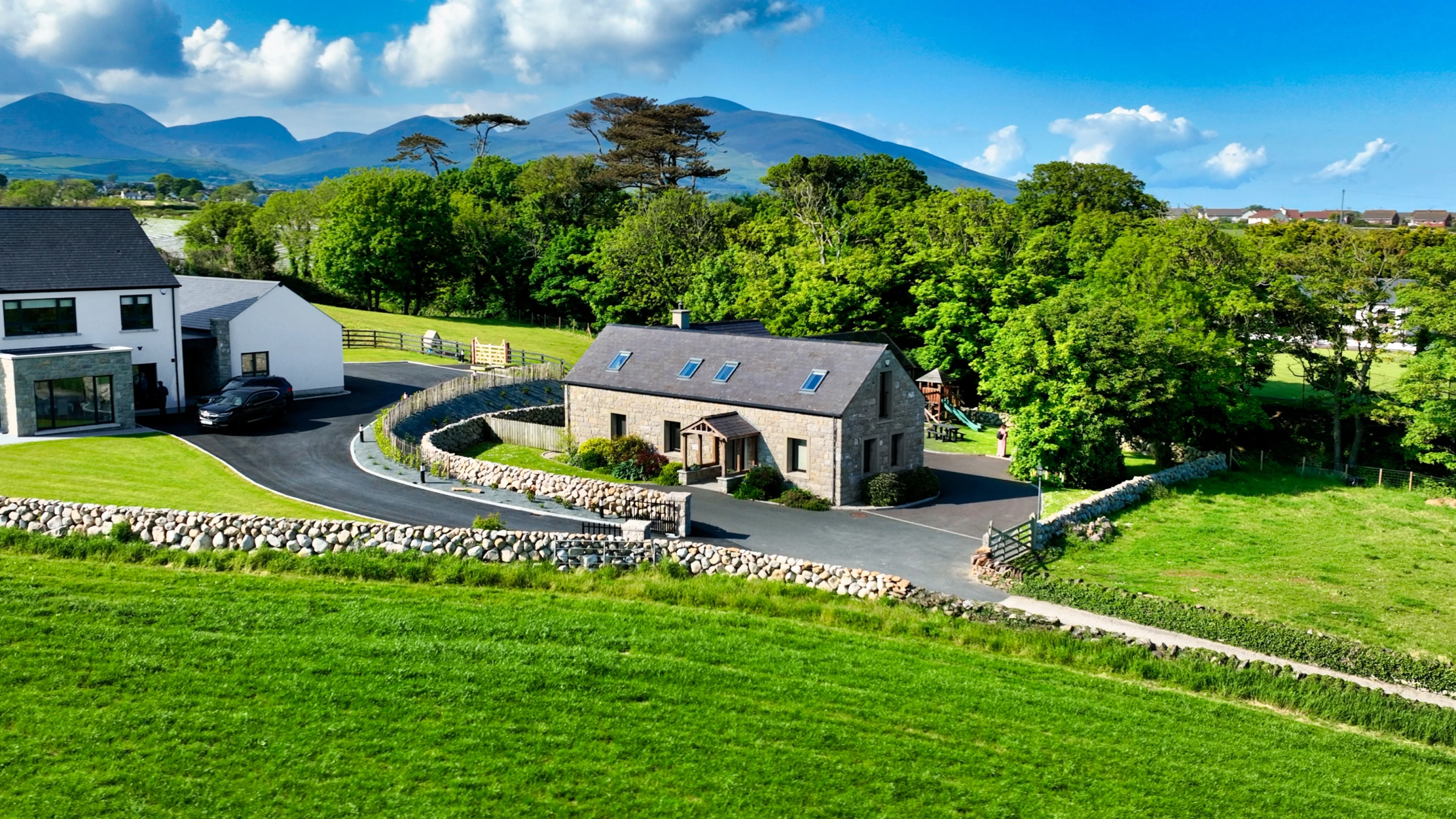 Annalong Stone Barn, with its magnificent views of the Irish Sea and Slieve Binnian, is a luxurious self-catering three-bedroom accommodation. The barn offers underfloor heating, WiFi, three bathrooms and secure parking within spacious grounds.